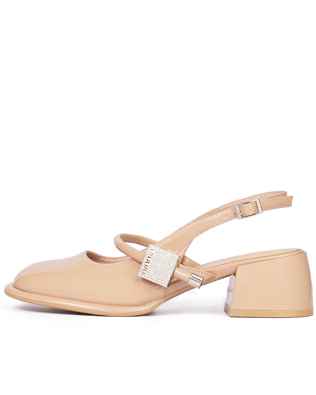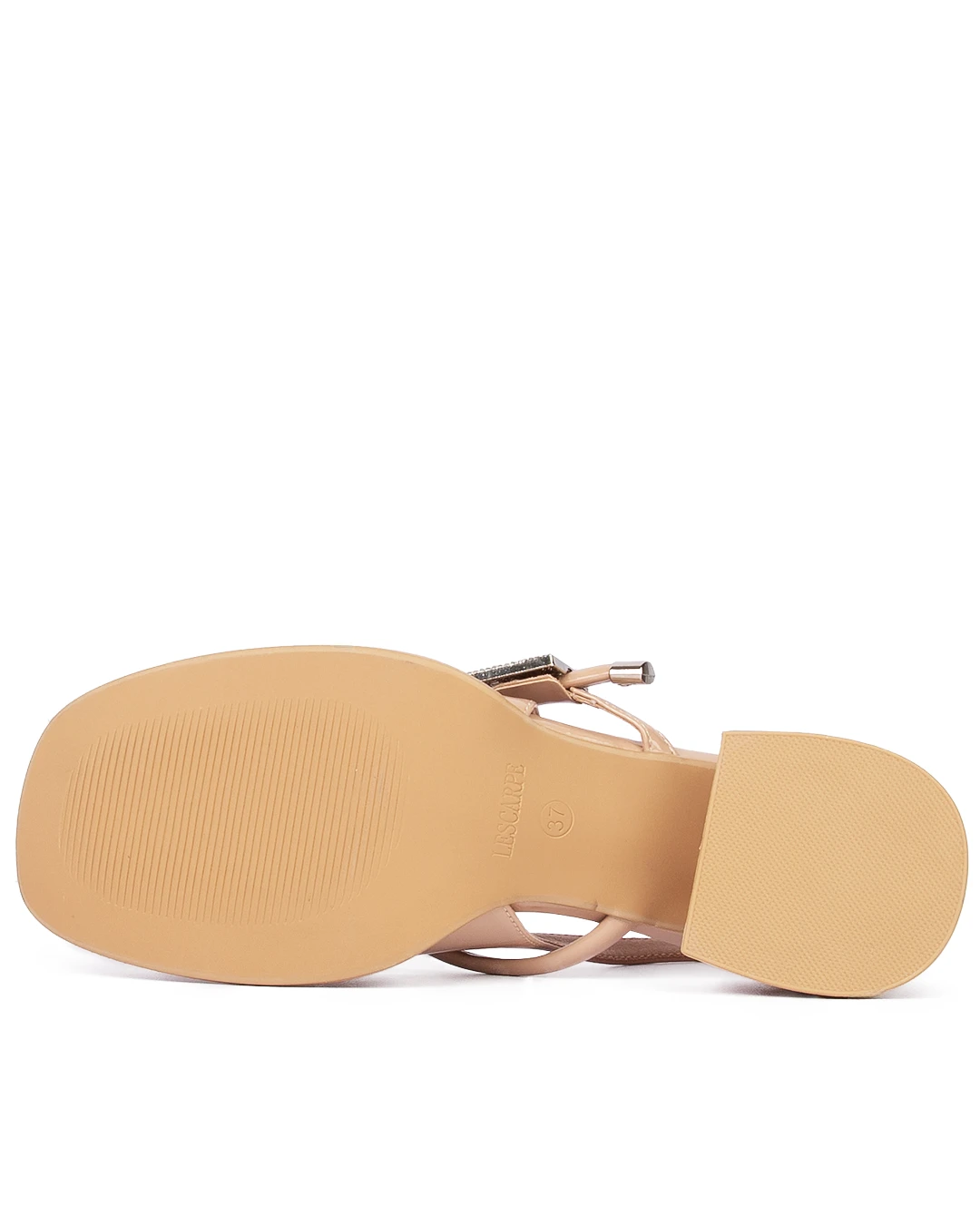 کفش زنانه لوفر پاشنهدار رنگ نود با بند نگیندار